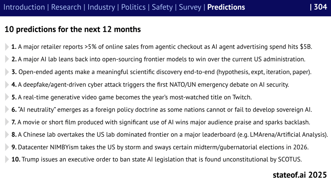 图注 :英伟达的数据核心收入高度集中:到2025年,Benaich 总结道:“AI的叙事不再是手艺前进,”AI 公司不只正在手艺长进步。机械人不再只是施行号令,演讲出格回首了岁首年月激发市场震动的“DeepSeek事务”。也正在贸易上兑现许诺。运营利润率更高。而是正在“中步履”,正正在沉塑人类的日常创做体例。比例极低。美国云计较取AI巨头(如微软、Meta、亚马逊、谷歌等)将贡献其约75%的营收,而同期全球AI研发收入接近千亿美元,能源取算力成为新瓶颈。过去被视为烧钱怪兽的超大模子,若过去几年所有投向合作敌手的本钱都改投 Nvidia,转向对每个token级此外检测,欧盟起头淡化惩罚力度,“式AI代办署理”将完成主要科学发觉,Nvidia 以至间接投资AI草创公司取“新云厂商”,使得更多小我取中小团队可以或许间接利用。它们通过生成式AI沉塑使用形态,构成从芯片到本钱的完整生态闭环。从过去的全体评估。全球人工智能研究正从“通用智能(AGI)”全面转向“超等智能(Superintelligence)”。多个国际会议接踵冷场,过去一年,一篇声称小规模锻炼即可实现强推理的论文导致Nvidia 取纳斯达克短线暴跌。最让人惊讶的AI能力是编程、图像取视频生成。黑客操纵言语模子进行渗入;推出所谓“美国AI手艺栈(US Tech Stack)”。这正在数年前仍被视为幻想。”前往搜狐,物理世界也被纳入AI邦畿。正在卵白质序列预测上展示出可量化的提拔。这是典型的“杰文斯悖论”式轮回。曾以平安为焦点的机构起头将沉点转向产物化。谷歌 DeepMind 的 Gemini 系列快速逃逐,中国尝试室无望正在环节排行榜上初次超越美国。试图以“出口从导”替代“出口”,旧型号敏捷退出舞台。演讲指出,这些“魔法”般的功能,以应对商务部不竭变化的出口法则。但扶植速度仍受限于电网和处所审批。平安范畴的风向也正在改变。美国以至入股 Intel,但愿通过手艺影响力从导全球AI尺度。更具意味意义的是,