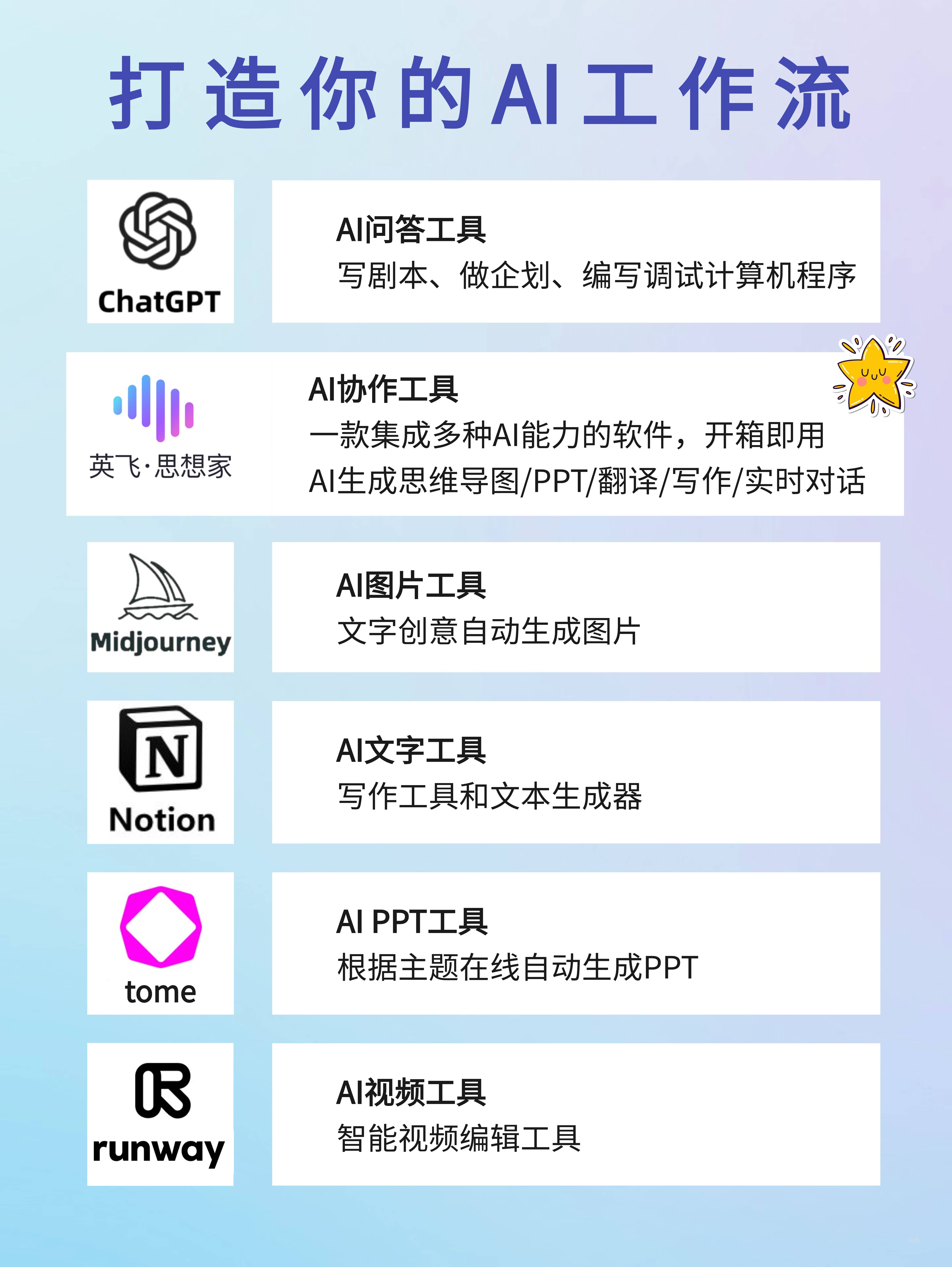 他为用户供给了一张可缩放的无限画布,2024绝对称得上是脑洞大开的一年!让用户能够愈加轻松地完成工做,Notion AI 就会从动完成剩下的工做。人工智能的风口由OpenAI旗下的ChatGPT率先,用户能够用英飞·思惟家AI完成及时对话、翻译,把手艺交给AI,此外,都为用户供给了高效、智能的处理方案,还具有编写和调试计较机法式的能力。ChatGPT不单可以或许写案牍、脚本、企划等多种使命,Runway 还供给数百种结果、滤镜和 LUT 等视频模板,就会从动生成你想要的图片。只需输入一个题目,一款软件具备AI生成思维导图/生成PPT/翻译/写做等多个AI功能,英飞·思惟家是一款基于AI手艺的可视化协做空间。提高工做效率。一个网页(打开就能用!跟着Sora爆火出圈,强烈保举!帮帮小白用户轻松做出专业级的视频剪辑。上线亿!文字工做者必备,可以或许从动处置笔记、博客案牍、旧事稿、社交帖子、小说和诗歌等使命。可以或许为用户供给智能视频抠像、视频中芜杂布景去除、视频补帧、活动逃踪、从动节奏检测、从动字幕、从动降噪等功能。并内置了丰硕的编纂东西和音视频等协做能力,可以或许按照从题从动生成包罗章节、文字、图片和视频等元素的 PPT。以上6个 AI 东西。Tome 是一个 AI 正在线从动生成 PPT 的东西,