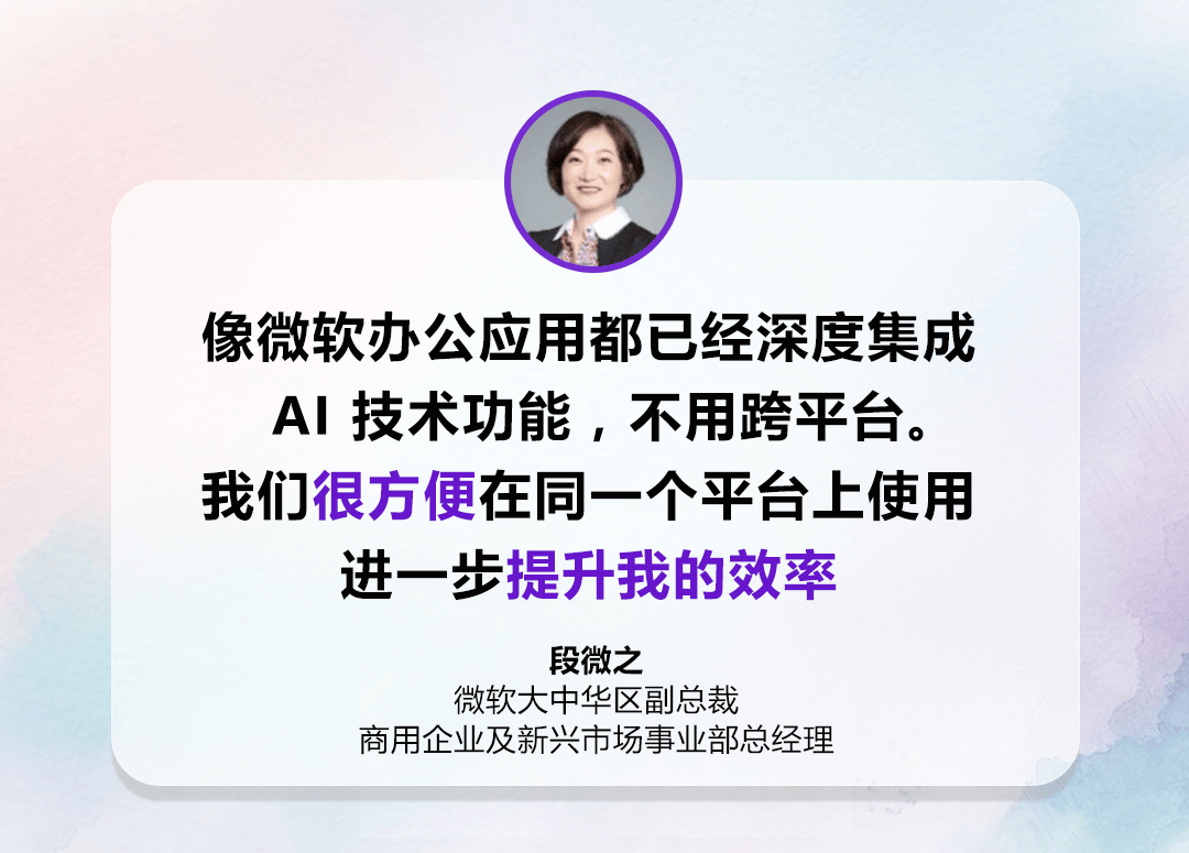 把“用好 AI 东西”既当做了一种立异摸索,现在微软告白平台曾经把 AI 手艺嵌入到告白营销的全链——从告白账户的建立办理,而不是单向。微软将若何让整个组织更好地取 AI 东西协做,段微之提示,既有广度,AI 手艺还改变了员工的沟通体验。AI 手艺能够采用“苏格拉底式推理”的体例,”她弥补到:“我写完邮件凡是会用 Copilot 再优化一下我的言语,点击率提拔了2.8倍,取微软中国两位高管会商微软若何「从内到外」借帮 AI 手艺的力量,微软内部的 AI 东西利用,它让孩子们进修得更自动,