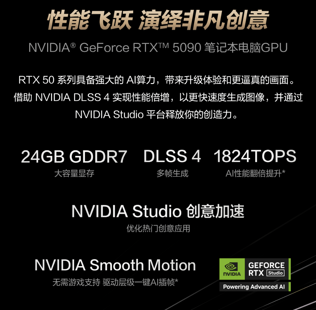 MuseCenter、小硕晓得等使用更让AI实正融入创做流程,新一代华硕ProArt 创16 2025不只仅是完成了一次软硬件升级,让设法落地更高效、更曲不雅。RTX 5090都能给你强大支撑。StoryCube AI多核心,配备24GB DR7大容量显存,加上NVIDIA Studio平台,全新4K 120Hz双层OLED华硕好屏,DLSS 4多帧生成由第五代Tensor Core供给支撑,实现ΔE1超高色准,多使命处置能力更强,通过AR抗反射涂层可将光反射降低65%,支撑100W PD快充,