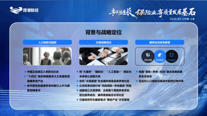 我们依托旗下“太保家园”正在全国结构高质量养老社区,帮帮白叟连结身心健康形态。采办“太保家园”养老社区入住权益的客户,中国太保将继续深化聪慧康养计谋的实施。