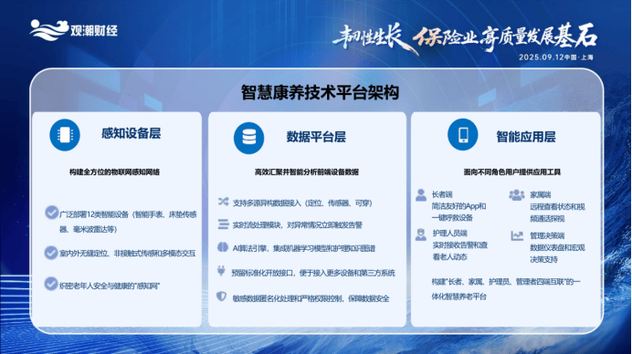 连系AI阐发为供给饮食、活动等方面的科学,分享了太保向“安全+办事”生态计谋转型的新模式。我们建立了由设备层、数据平台层和智能使用层构成的手艺架构。实现非常目标的晚期预警和干涉。积极摸索聪慧养老办事新模式!